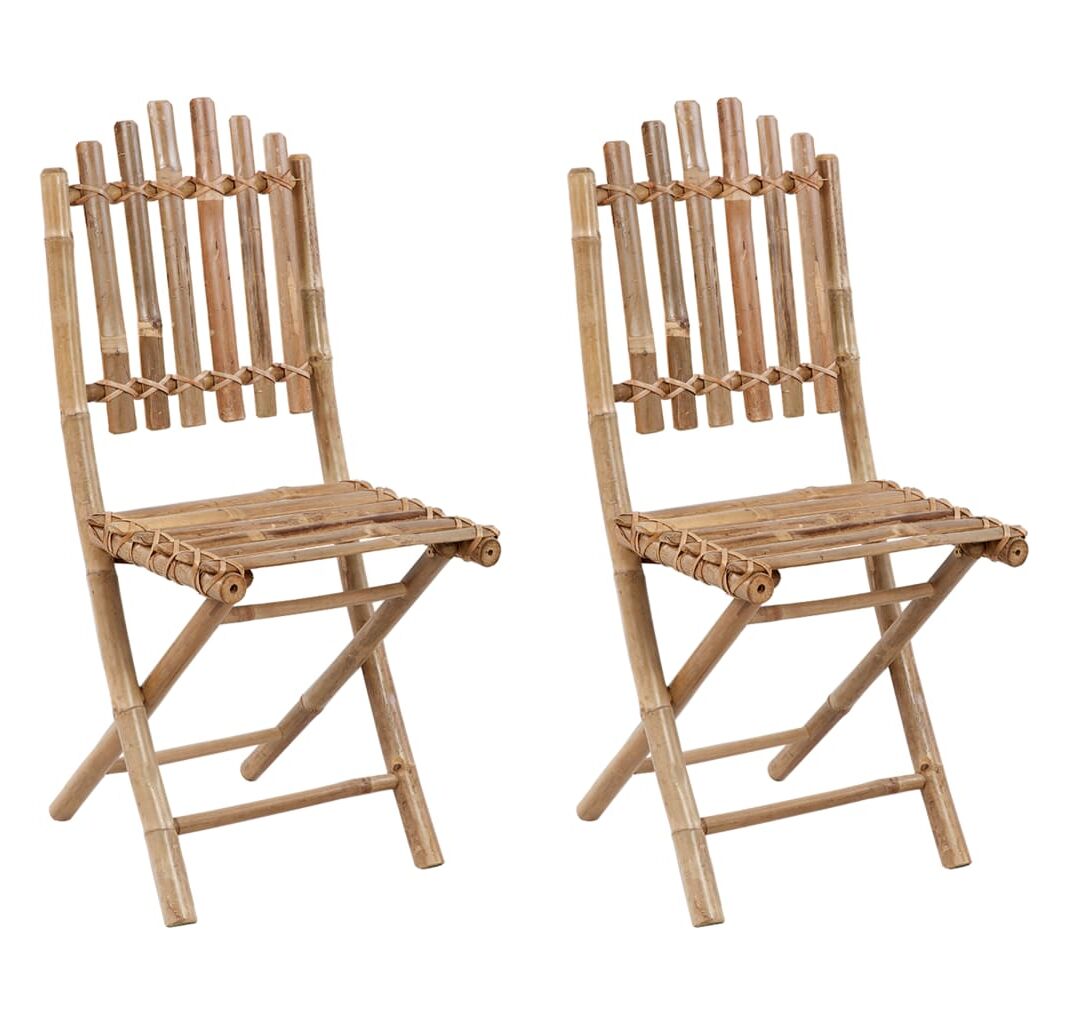Fabricat din bambus masiv, scaunul de exterior este robust și durabil. Este, de asemenea, rezistent la intemperii, impermeabil și ușor de curățat cu o cârpă umedă. Scaunul de masă este pliabil, pentru a economisi spațiu de depozitare, atunci când nu este utilizat. Mai mult, pernele incluse oferă un plus de confort în timpul relaxării. Este fabricat din 100% poliester, ceea ce îl face rezistent și durabil, potrivit pentru utilizare în exterior. Fiecare pernă are două seturi de șireturi, pentru o fixare mai bună pe scaun.