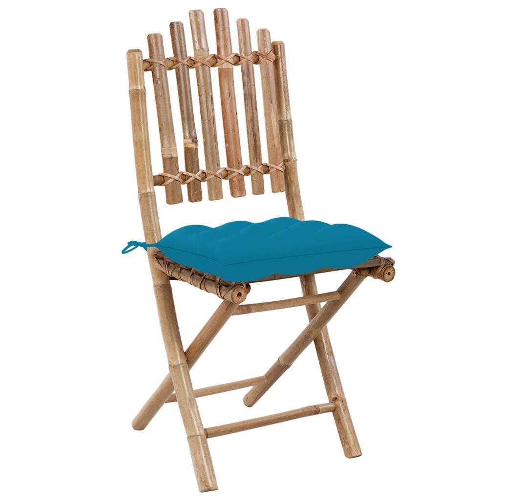 Fabricat din bambus masiv, scaunul de exterior este robust și durabil. Este, de asemenea, rezistent la intemperii, impermeabil și ușor de curățat cu o cârpă umedă. Scaunul de masă este pliabil, pentru a economisi spațiu de depozitare, atunci când nu este utilizat. Mai mult, pernele incluse oferă un plus de confort în timpul relaxării. Este fabricat din 100% poliester, ceea ce îl face rezistent și durabil, potrivit pentru utilizare în exterior. Fiecare pernă are două seturi de șireturi, pentru o fixare mai bună pe scaun.