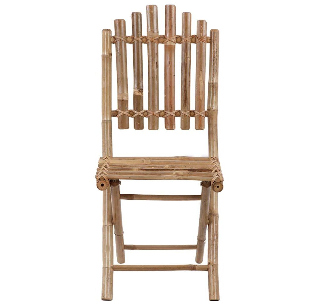 Fabricat din bambus masiv, scaunul de exterior este robust și durabil. Este, de asemenea, rezistent la intemperii, impermeabil și ușor de curățat cu o cârpă umedă. Scaunul de masă este pliabil, pentru a economisi spațiu de depozitare, atunci când nu este utilizat. Mai mult, pernele incluse oferă un plus de confort în timpul relaxării. Este fabricat din 100% poliester, ceea ce îl face rezistent și durabil, potrivit pentru utilizare în exterior. Fiecare pernă are două seturi de șireturi, pentru o fixare mai bună pe scaun.