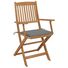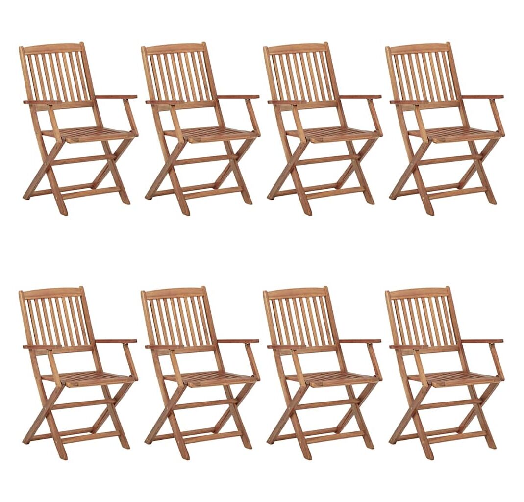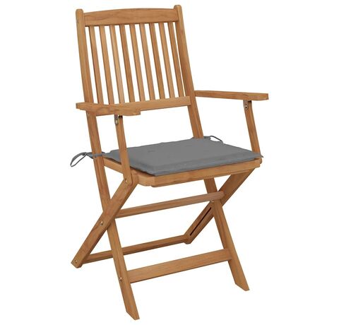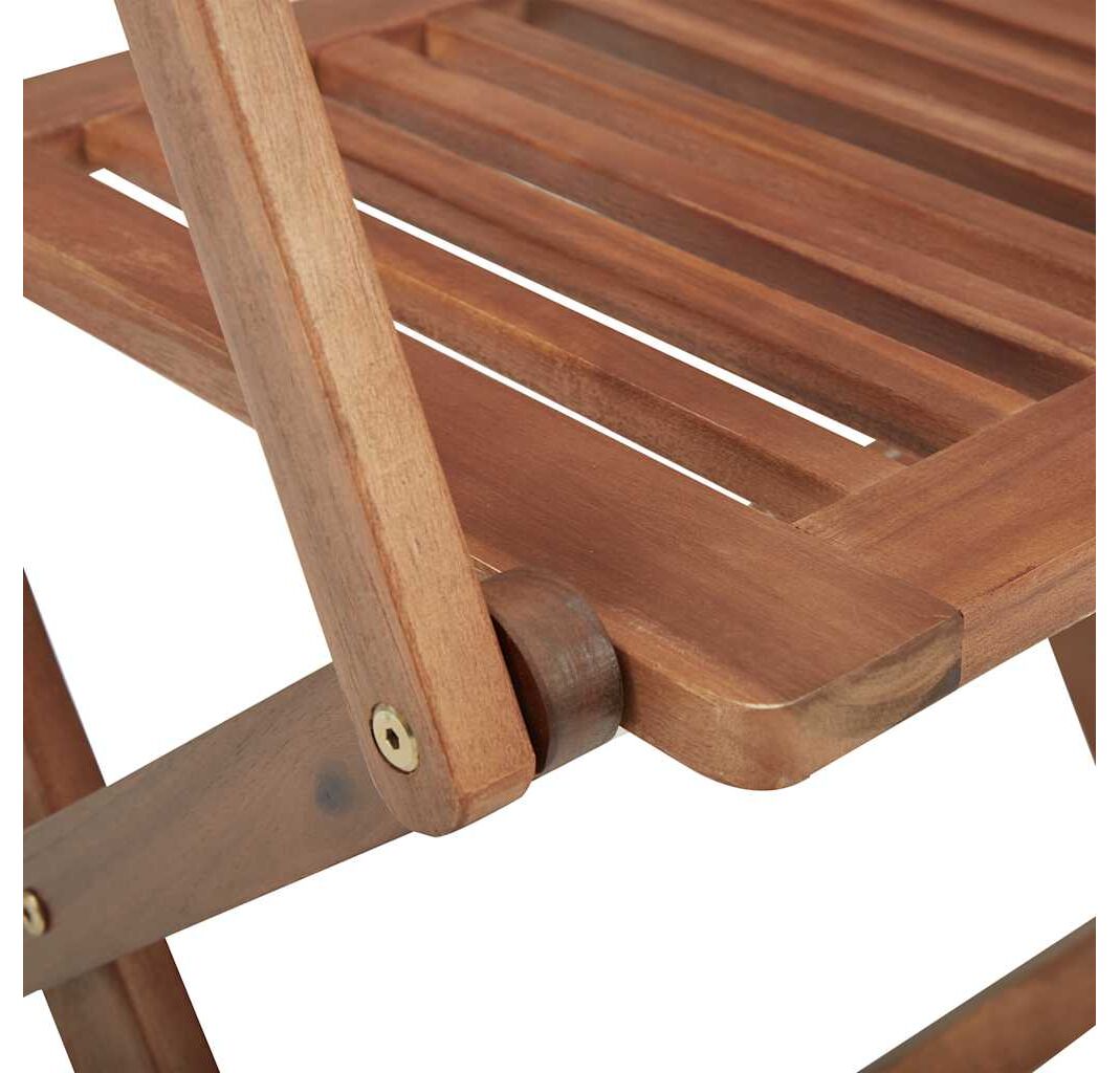 Aceste scaune de grădină sunt fabricate din lemn masiv de acacia, fiind robuste și stabile. Lemnul masiv de acacia are puterea de a suporta greutatea și uzura timpului. Așadar, aceste scaune de exterior oferă ani întregi de utilizare. În plus, scaunele pot fi pliate pentru a economisi spațiu, atunci când nu sunt utilizate. Pernele incluse oferă un plus de confort. Fiecare pernă are două seturi de sfori, pentru o fixare mai bună pe scaun.