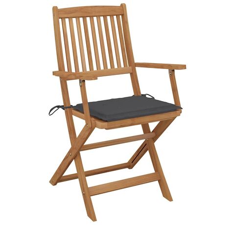 Aceste scaune de grădină sunt fabricate din lemn masiv de acacia, fiind robuste și stabile. Lemnul masiv de acacia are puterea de a suporta greutatea și uzura timpului. Așadar, aceste scaune de exterior oferă ani întregi de utilizare. În plus, scaunele pot fi pliate pentru a economisi spațiu, atunci când nu sunt utilizate. Pernele incluse oferă un plus de confort. Fiecare pernă are două seturi de sfori, pentru o fixare mai bună pe scaun.