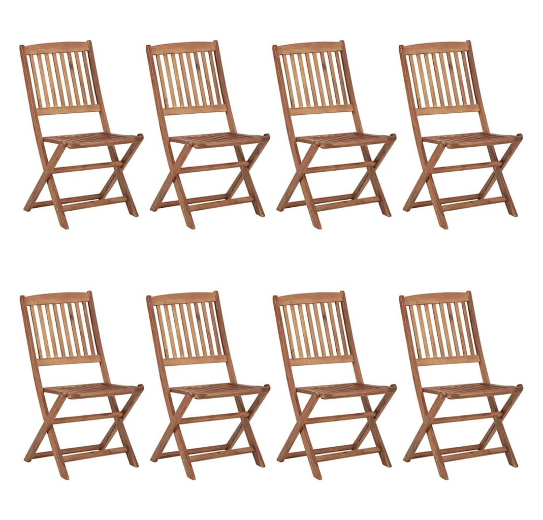 Aceste scaune de grădină sunt fabricate din lemn masiv de acacia, fiind robuste și stabile. Lemnul masiv de acacia are puterea de a suporta greutatea și uzura timpului. Așadar, aceste scaune de exterior oferă ani întregi de utilizare. În plus, scaunele pot fi pliate pentru a economisi spațiu, atunci când nu sunt utilizate. Pernele incluse oferă un plus de confort. Fiecare pernă are două seturi de sfori, pentru o fixare mai bună pe scaun.