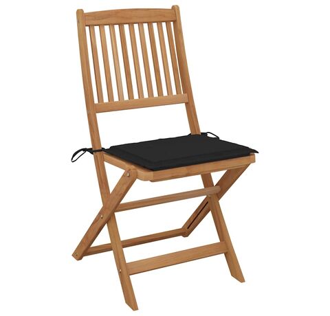 Aceste scaune de grădină sunt fabricate din lemn masiv de acacia, fiind robuste și stabile. Lemnul masiv de acacia are puterea de a suporta greutatea și uzura timpului. Așadar, aceste scaune de exterior oferă ani întregi de utilizare. În plus, scaunele pot fi pliate pentru a economisi spațiu, atunci când nu sunt utilizate. Pernele incluse oferă un plus de confort. Fiecare pernă are două seturi de sfori, pentru o fixare mai bună pe scaun.
