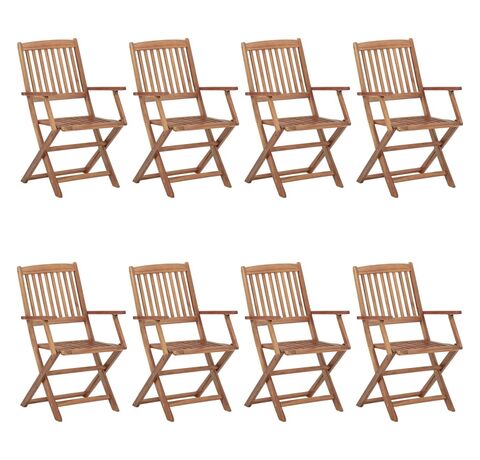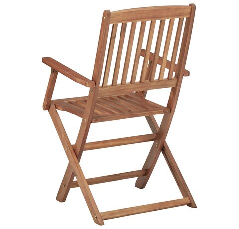 Aceste scaune de grădină sunt fabricate din lemn masiv de acacia, fiind robuste și stabile. Lemnul masiv de acacia are puterea de a suporta greutatea și uzura timpului. Așadar, aceste scaune de exterior oferă ani întregi de utilizare. În plus, scaunele pot fi pliate pentru a economisi spațiu, atunci când nu sunt utilizate. Pernele incluse oferă un plus de confort. Fiecare pernă are două seturi de sfori, pentru o fixare mai bună pe scaun.
