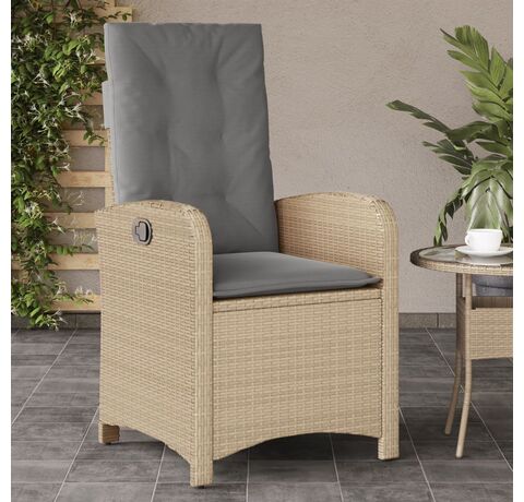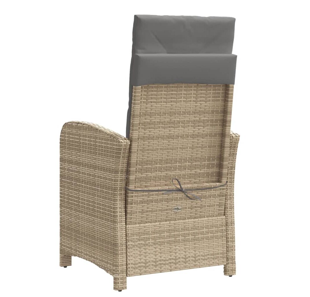 - Spătar reglabil: Acest mobilier de grădină are un mâner pe partea dreaptă. Puteți regla spătarul în orice poziție trăgând de mâner. De asemenea, puteți readuce rapid spătarul în poziția inițială cu ajutorul mânerului.