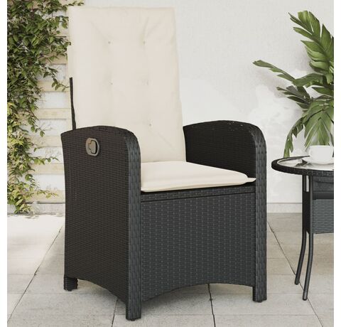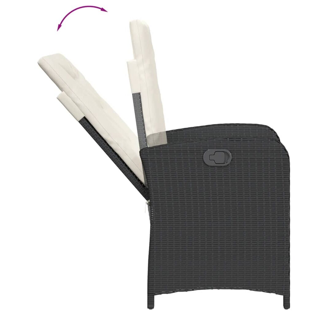 Scaune de grădină rabatabile cu perne, 2 buc., negru, poliratan