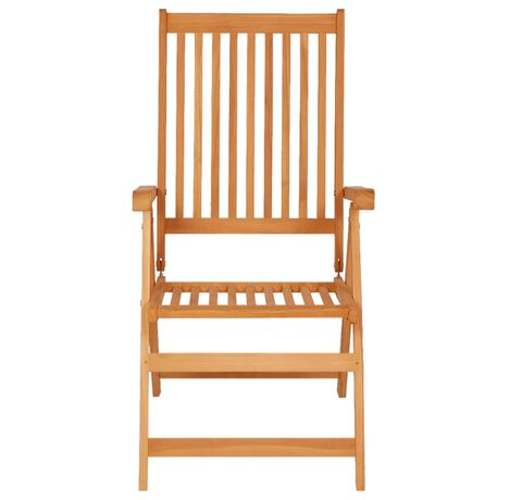 Scaunul pliabil și rabatabil, din lemn, are un design clasic. Construit din lemn dur de tec, extrem de durabil, această piesă de mobilier a fost tratată, uscată în cuptor și apoi șlefuită fin pentru a da un aspect foarte neted. Lemnul de tec este cunoscut pentru durabilitatea sa excepțională și rezistența la intemperii, fiind mult mai potrivit pentru mobilierul de grădină decât orice alt tip de lemn. Lemnul din tec este alegerea perfectă dacă doriți să achiziționați o piesă de mobilier de grădină de lungă durată. Spătarul fotoliului poate fi ajustat în 7 poziții, pentru a găsi întotdeauna poziția cea mai confortabilă. Are o greutate redusă, fiind ușor de deplasat. Scaunul de masă poate fi pliat pentru a economisi spațiu, atunci când nu este utilizat. Mai mult, pernele incluse oferă un plus de confort. Fiecare pernă are o bandă elastică și două seturi de șnururi pentru o fixare mai bună pe scaun.