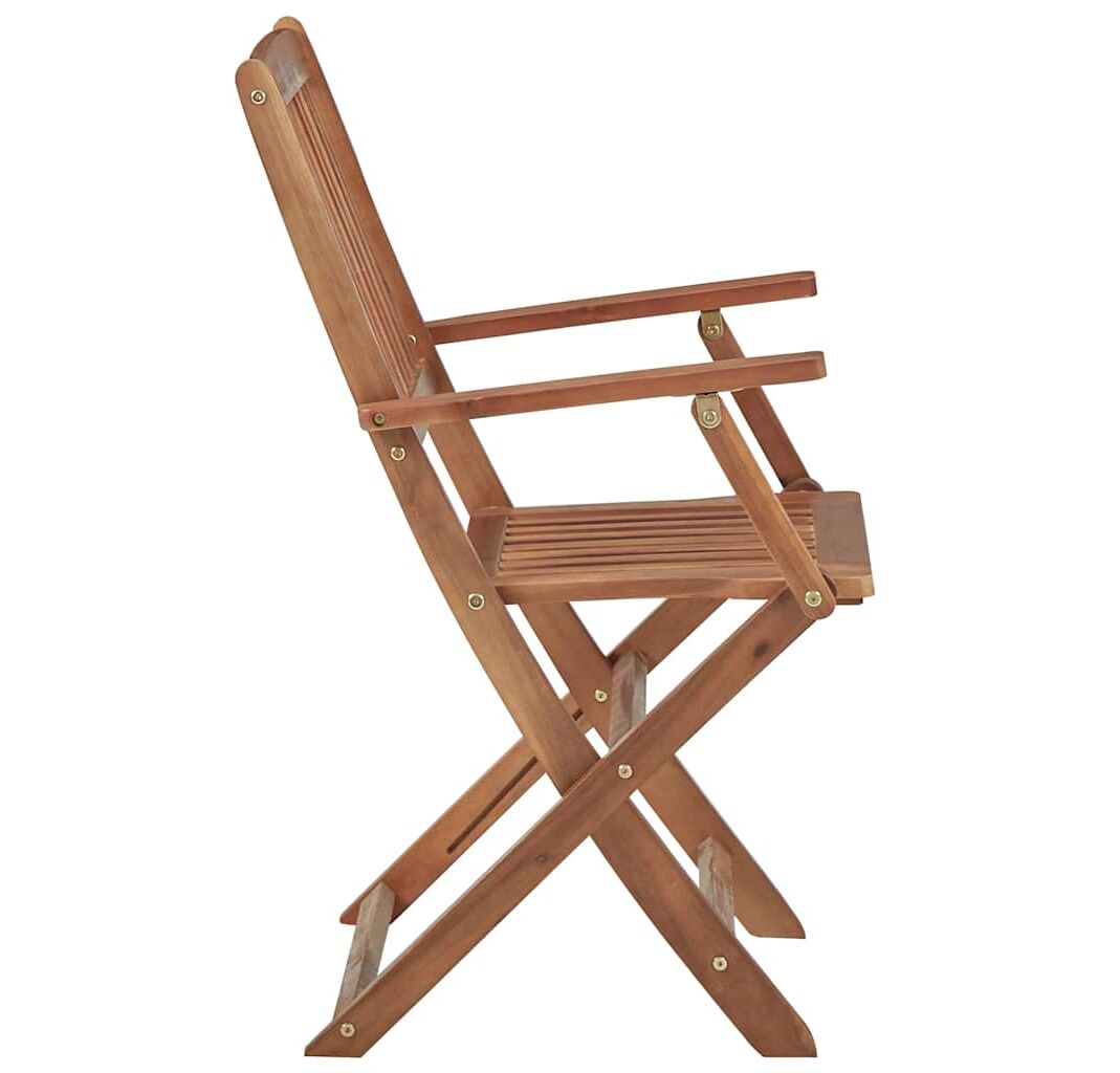 Aceste scaune de grădină sunt fabricate din lemn masiv de acacia, fiind robuste și stabile. Lemnul masiv de acacia are puterea de a suporta greutatea și uzura timpului. Așadar, aceste scaune de exterior oferă ani întregi de utilizare. În plus, scaunele pot fi pliate pentru a economisi spațiu, atunci când nu sunt utilizate. Pernele incluse oferă un plus de confort. Fiecare pernă are două seturi de sfori, pentru o fixare mai bună pe scaun.