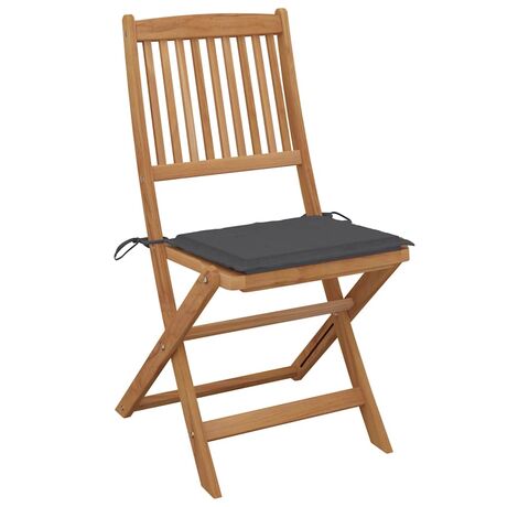 Aceste scaune de grădină sunt fabricate din lemn masiv de acacia, fiind robuste și stabile. Lemnul masiv de acacia are puterea de a suporta greutatea și uzura timpului. Așadar, aceste scaune de exterior oferă ani întregi de utilizare. În plus, scaunele pot fi pliate pentru a economisi spațiu, atunci când nu sunt utilizate. Pernele incluse oferă un plus de confort. Fiecare pernă are două seturi de sfori, pentru o fixare mai bună pe scaun.