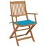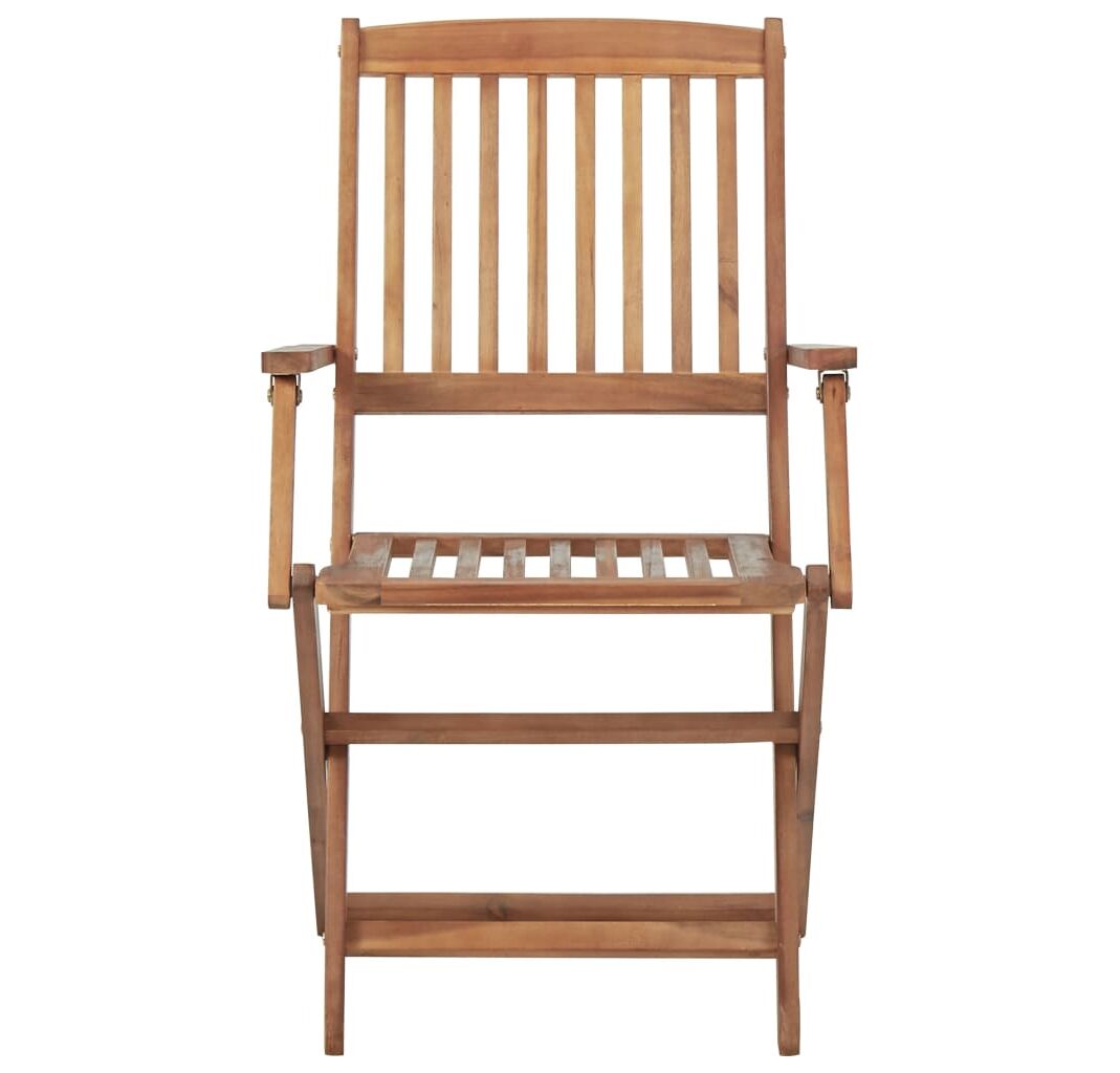Aceste scaune de grădină sunt fabricate din lemn masiv de acacia, fiind robuste și stabile. Lemnul masiv de acacia are puterea de a suporta greutatea și uzura timpului. Așadar, aceste scaune de exterior oferă ani întregi de utilizare. În plus, scaunele pot fi pliate pentru a economisi spațiu, atunci când nu sunt utilizate. Pernele incluse oferă un plus de confort. Fiecare pernă are două seturi de sfori, pentru o fixare mai bună pe scaun.