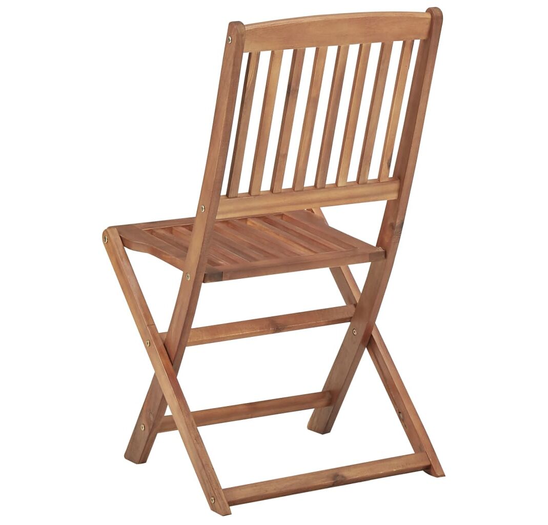 Aceste scaune de grădină sunt fabricate din lemn masiv de acacia, fiind robuste și stabile. Lemnul masiv de acacia are puterea de a suporta greutatea și uzura timpului. Așadar, aceste scaune de exterior oferă ani întregi de utilizare. În plus, scaunele pot fi pliate pentru a economisi spațiu, atunci când nu sunt utilizate. Pernele incluse oferă un plus de confort. Fiecare pernă are două seturi de sfori, pentru o fixare mai bună pe scaun.