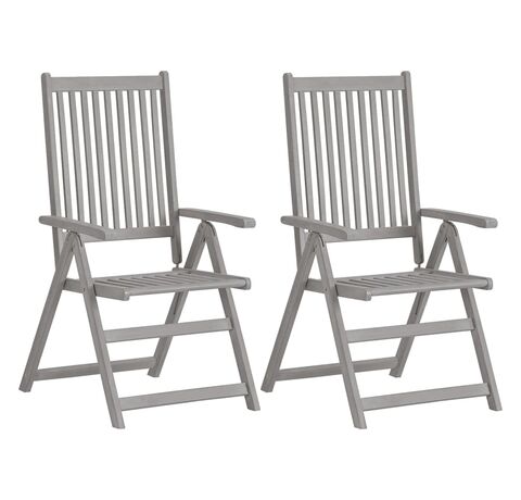 Aceste fotolii sunt realizate din lemn masiv de acacia cu un finisaj gri decolorat, un lemn de esență tare cu granulație densă. Aceste scaune de exterior frumos proiectate sunt stabile, durabile și atrăgătoare. Spătarul scaunului poate fi reglat în 5 setări de înclinare, astfel încât să puteți alege întotdeauna cea mai confortabilă poziție, în funcție de preferințele dumneavoastră. Mai mult, pernele incluse oferă un plus de confort în timpul relaxării sau al servirii mesei. Fiecare pernă are o bandă elastică și două seturi de sfori, pentru a se fixa mai bine pe scaun. Aceste scaune sunt perfecte pentru a lua masa cu familia, sau doar pentru a vă bucura de vreme, în grădină.