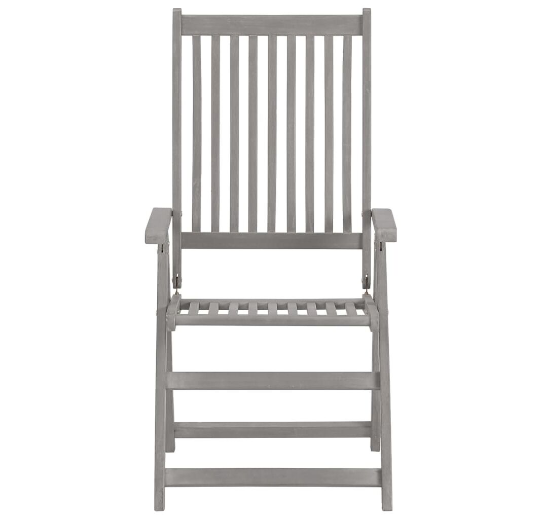 Aceste fotolii sunt realizate din lemn masiv de acacia cu un finisaj gri decolorat, un lemn de esență tare cu granulație densă. Aceste scaune de exterior frumos proiectate sunt stabile, durabile și atrăgătoare. Spătarul scaunului poate fi reglat în 5 setări de înclinare, astfel încât să puteți alege întotdeauna cea mai confortabilă poziție, în funcție de preferințele dumneavoastră. Mai mult, pernele incluse oferă un plus de confort în timpul relaxării sau al servirii mesei. Fiecare pernă are o bandă elastică și două seturi de sfori, pentru a se fixa mai bine pe scaun. Aceste scaune sunt perfecte pentru a lua masa cu familia, sau doar pentru a vă bucura de vreme, în grădină.