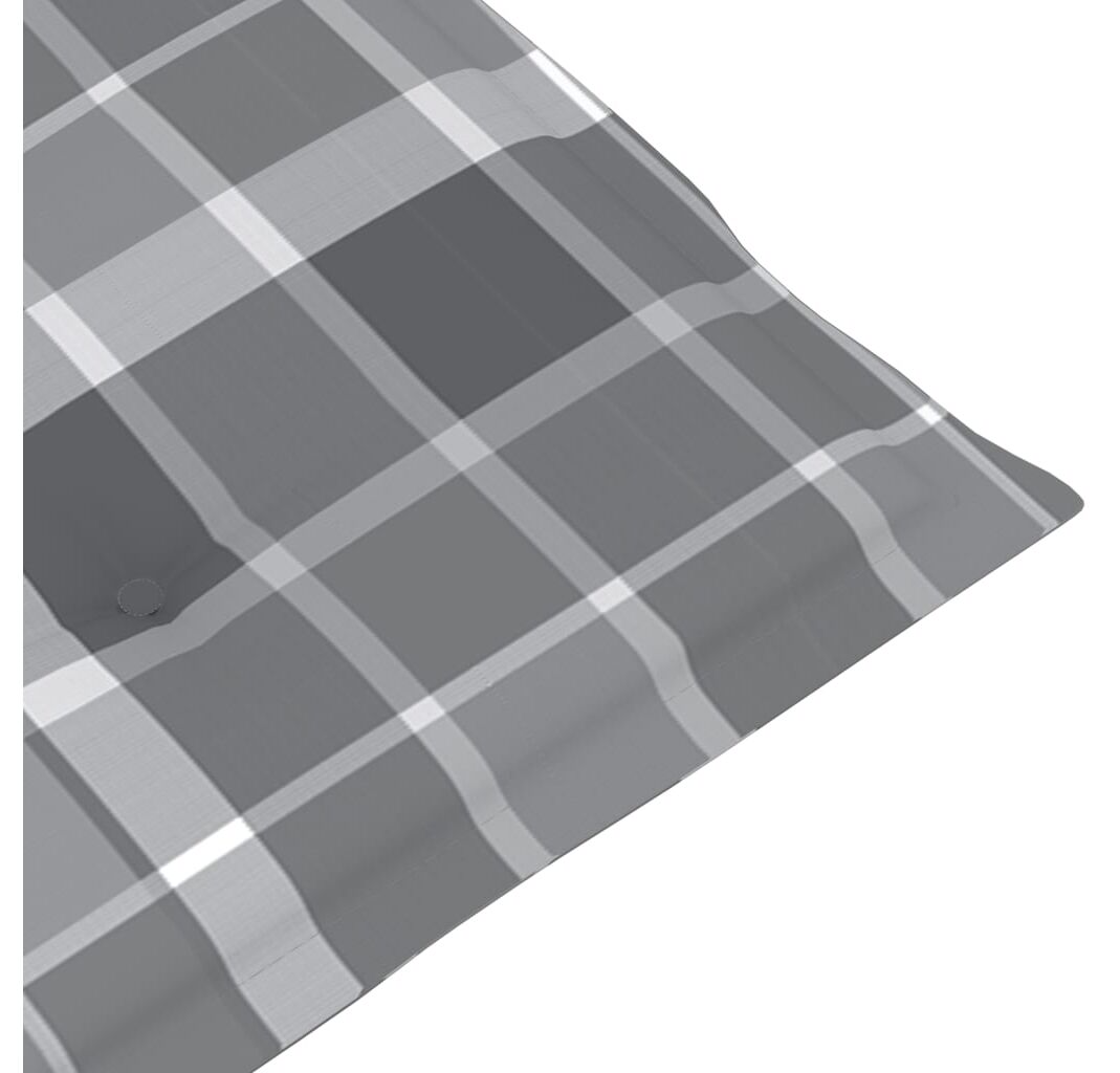 • Perna are un model în carouri gri