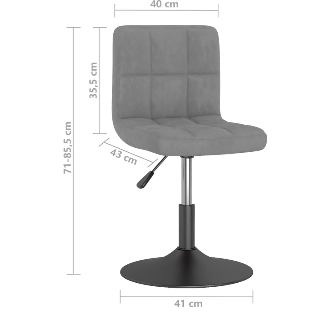 Scaunele pivotante sunt tapițate cu o catifea moale la atingere și căptușite gros, ceea ce le face extrem de confortabile și durabile. Cadrul din oțel negru vopsit electrostatic oferă o rezistență și o stabilitate ridicate. Datorită mecanismului de ridicare cu piston pe gaz, puteți regla înălțimea scaunului în funcție de confortul dvs. În plus, se poate roti la 360 de grade pentru o flexibilitate mare.