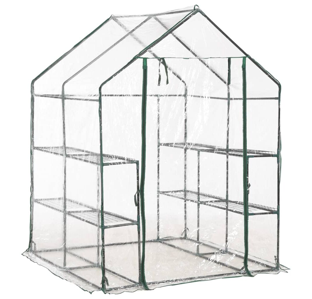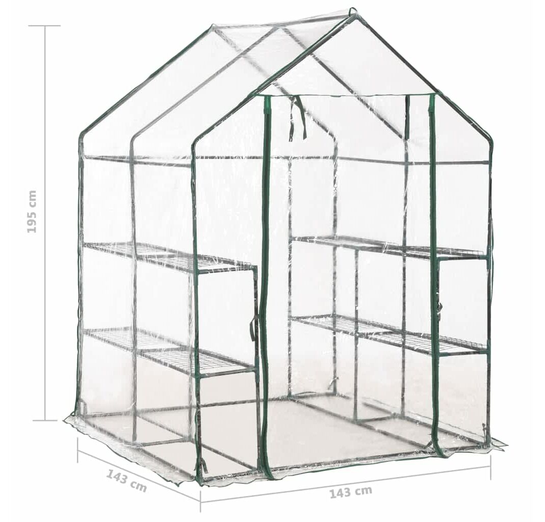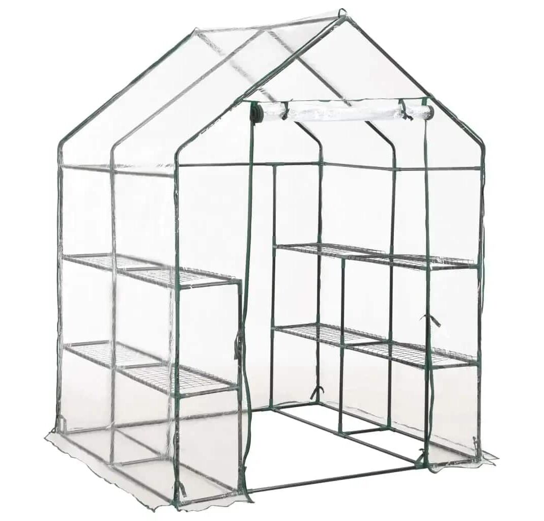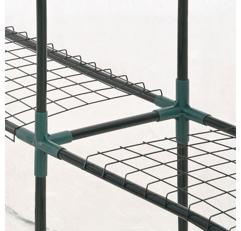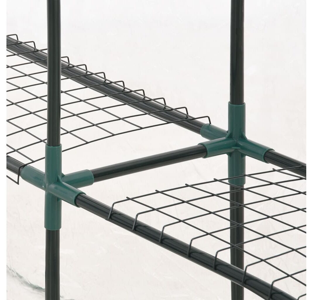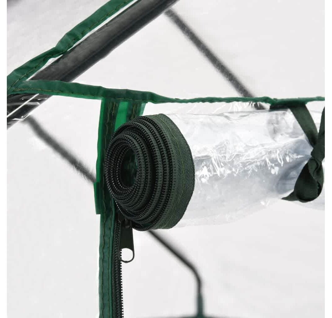 Această seră este structurată cu un cadru din oțel robust, rezistent la rugină, și folie de PVC, ce asigură o durabilitate superioară și utilizare îndelungată. Construită cu 8 rafturi din sârmă (4 pe fiecare parte), această seră asigură un spațiu amplu pentru lăstarii plantelor, flori, ierburi și legume proaspete. Husa transparentă din plastic permite trecerea luminii pentru flori și plante și monitorizarea constantă a plantelor. Proiectată cu o ușă rulabilă cu fermoar, sera asigură o bună circulare a aerului și un acces facil la plante.