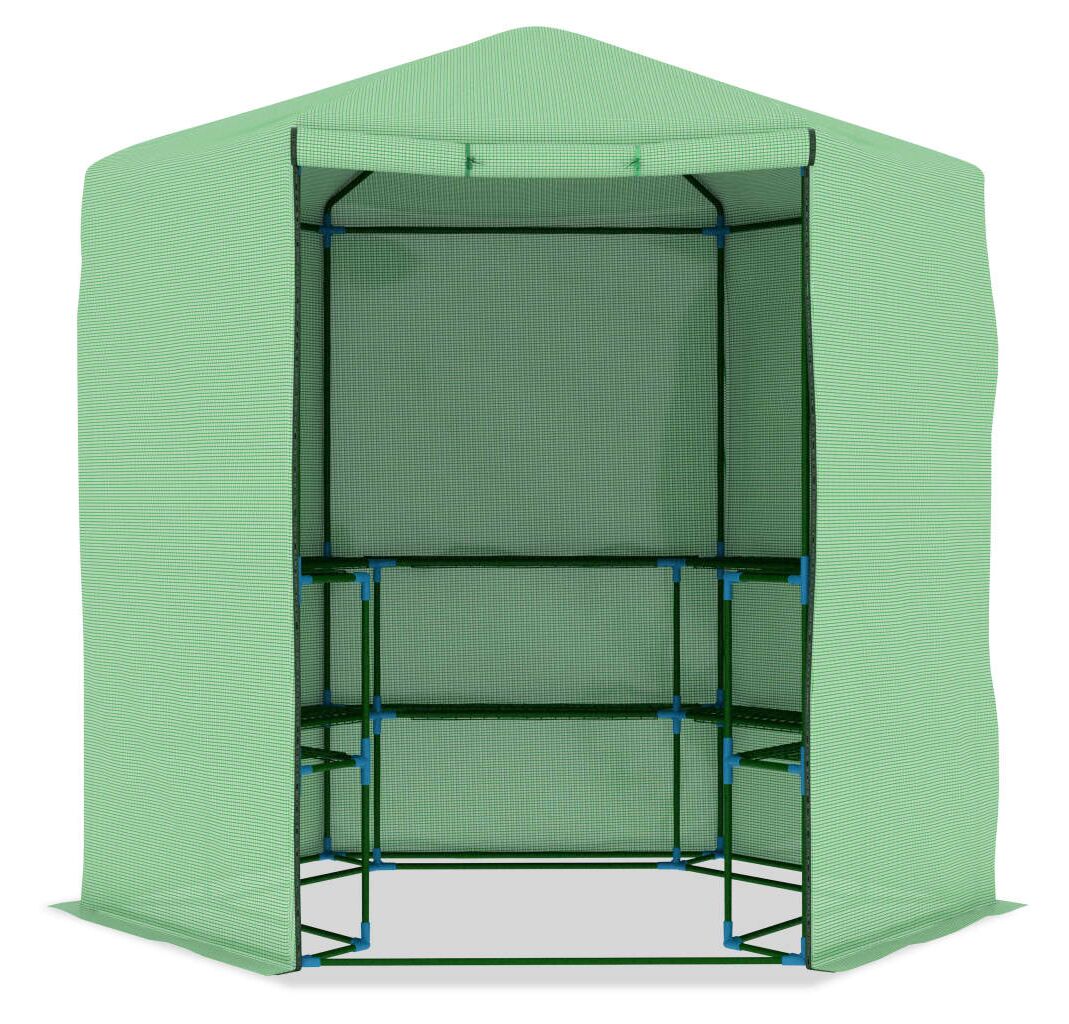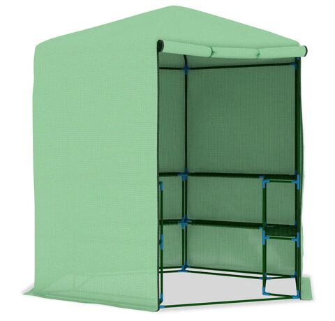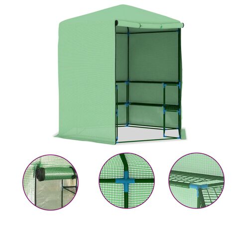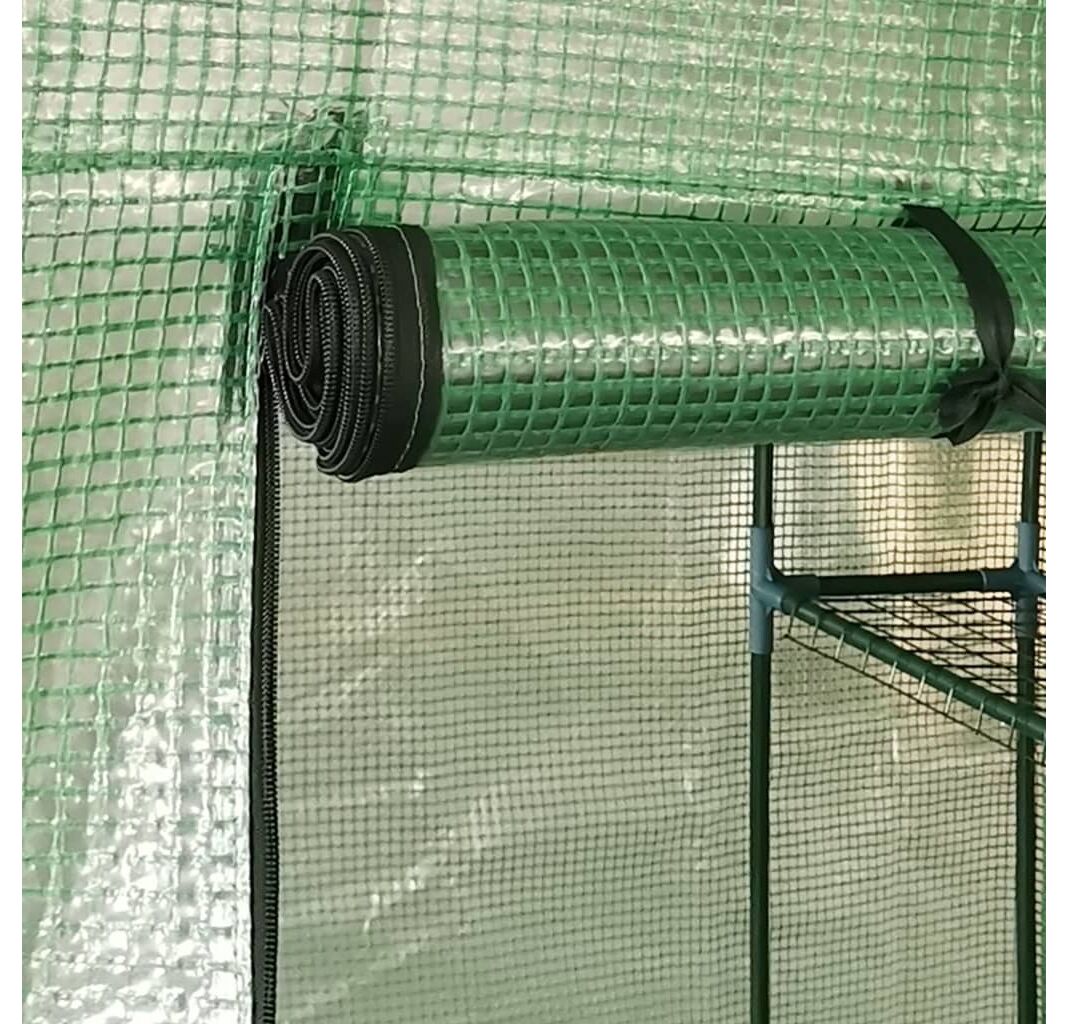 Această seră de plante este o soluție minunată pentru a vă proteja plantele de vânt, ploaie, razele soarelui și păsări dăunătoare. Sera este fabricată din țesătură de plasă din polietilenă de 170 g/m², care este cu 25% mai grea decât țesătura de plasă standard a multor competitori. Prin urmare, rezistă mai bine la impactul factorilor de mediu. Această seră de plante are un cadru din oțel vopsit electrostatic, robust și rezistent la rugină, pentru o stabilitate suplimentară. De asemenea, este prevăzută cu rafturi pentru expunerea plantelor, precum și cu o ușă pentru ventilație mai bună și acces ușor.