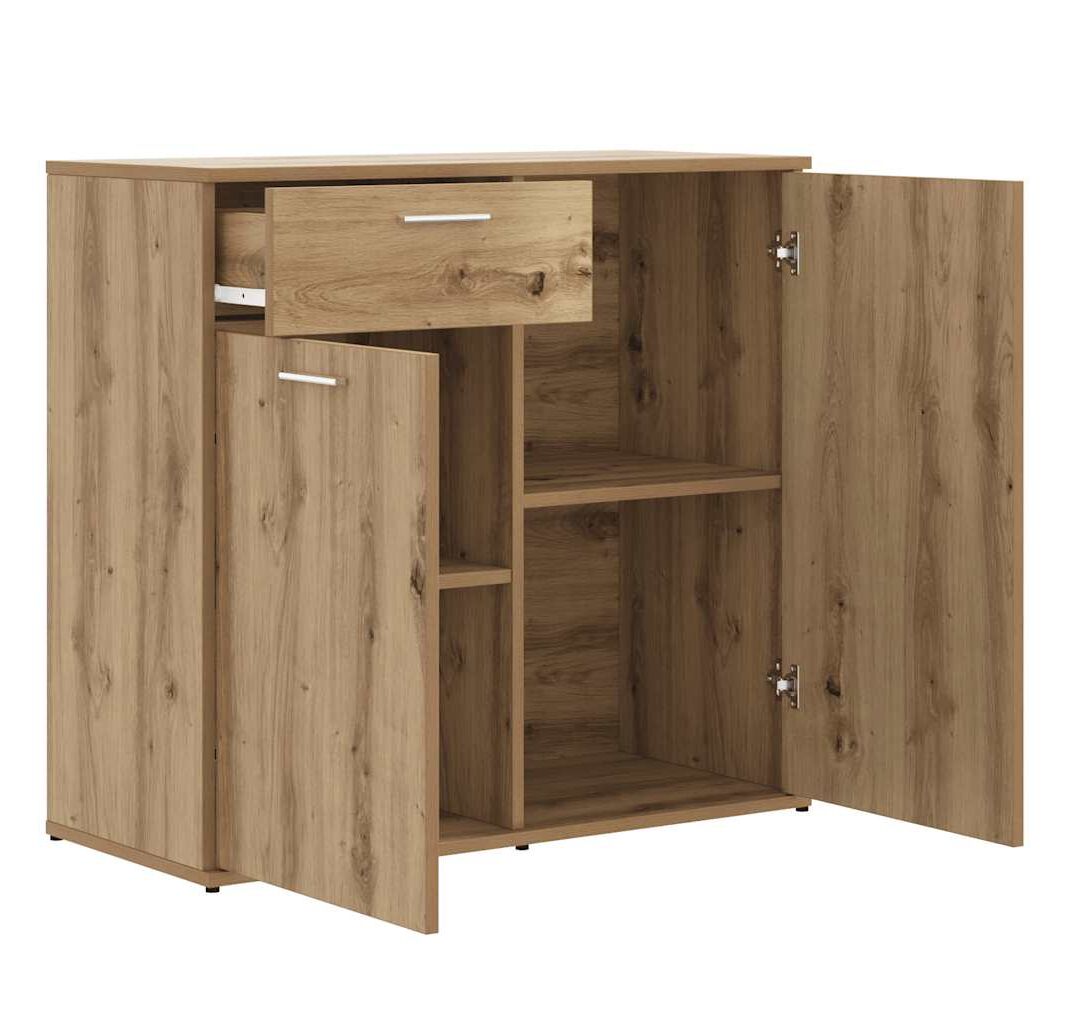 Având 2 uși și 1 sertar, această servantă oferă un spațiu amplu de depozitare pentru cărți, aparate multimedia și alte articole. Blatul robust este ideal pentru a expune obiecte decorative, rame foto sau plante în ghivece. În plus, acest dulap este ușor de curățat cu o cârpă umedă.