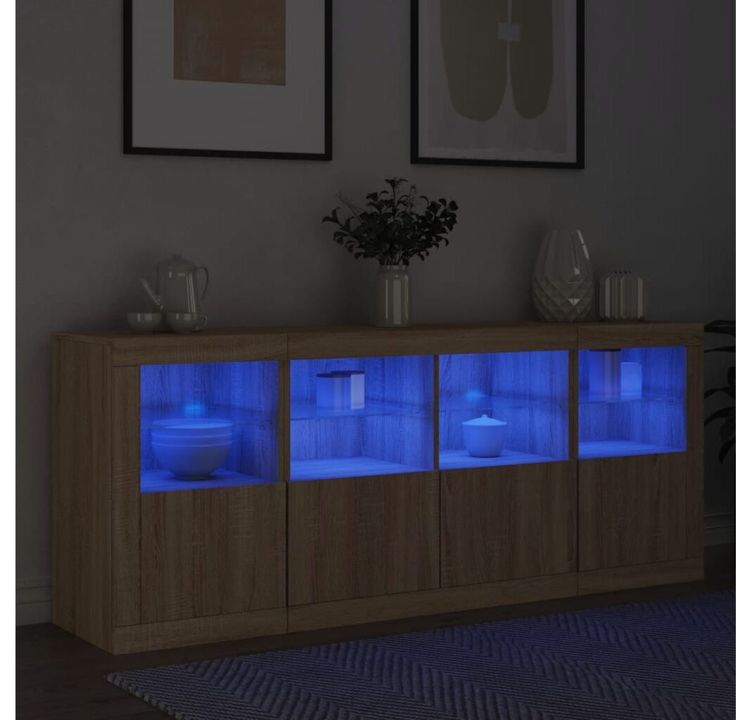 Decorați-vă camera cu această servantă modernă cu lumini LED, care se îmbină cu ușurință cu mobilierul, în orice stil din locuința dvs.