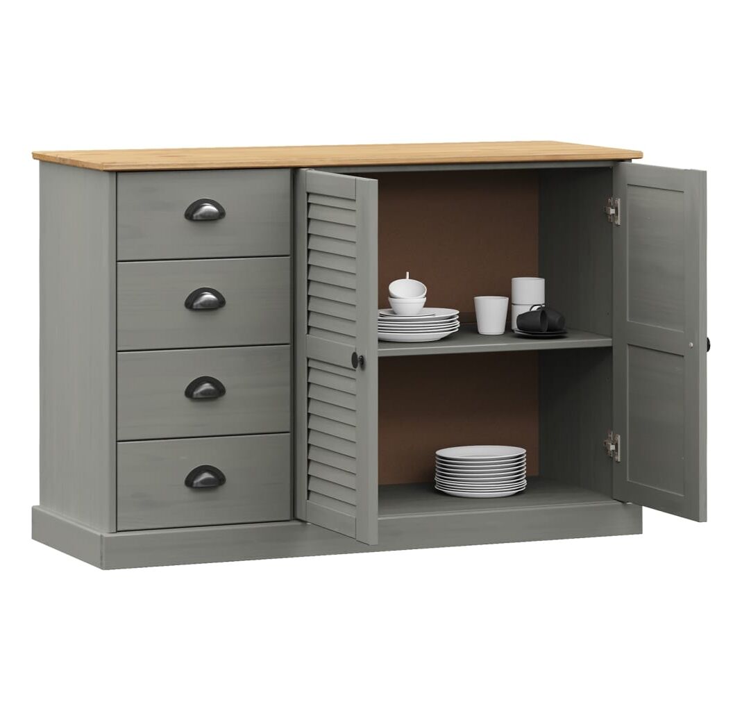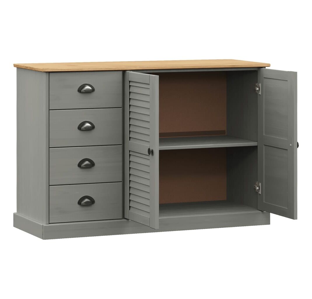 Servantă cu sertare VIGO, gri, 113x40x75 cm, lemn masiv de pin