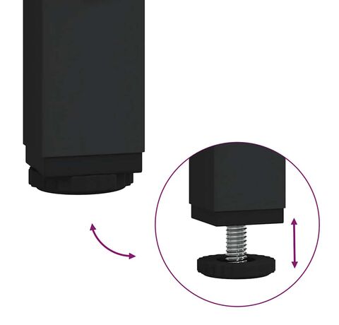 • Picioare reglabile: Picioarele reglabile cu suporturi din plastic mențin dulapul echilibrat pe un teren neuniform și măresc stabilitatea.