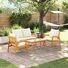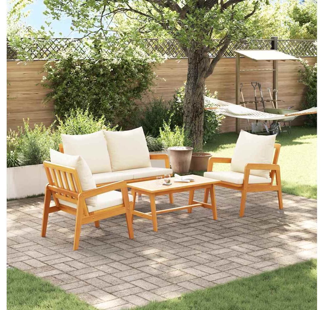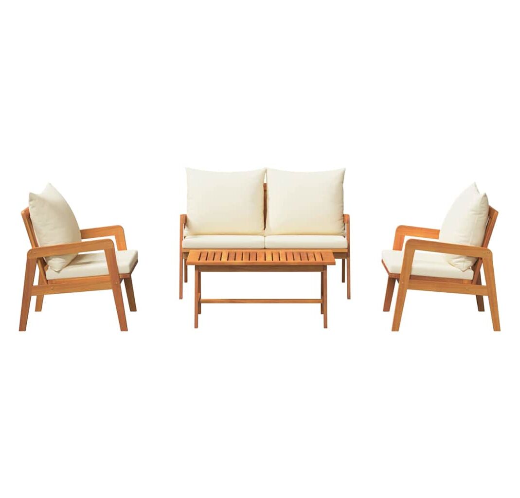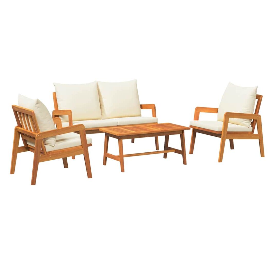 Setul ăsta de canapea de exterior e super pentru cine iubește stilul și funcționalitatea în locurile afară. Culoarea crem alb se potrivește perfect cu lemnul de acacia, transformând orice balcon sau verandă într-un loc tare chic pentru relaxare și întâlniri cu prietenii.