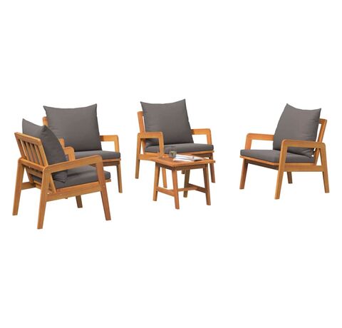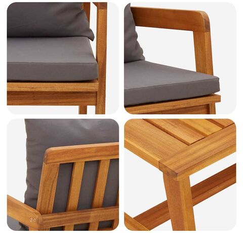 - Construcție Robustă: Fabricat din lemn masiv de acacia, acest set e făcut să dureze și să reziste la diverse condiții meteorologice. Finisajul natural din ulei protejează împotriva umezelii și a razelor UV, păstrându-l totodată aspectuos.