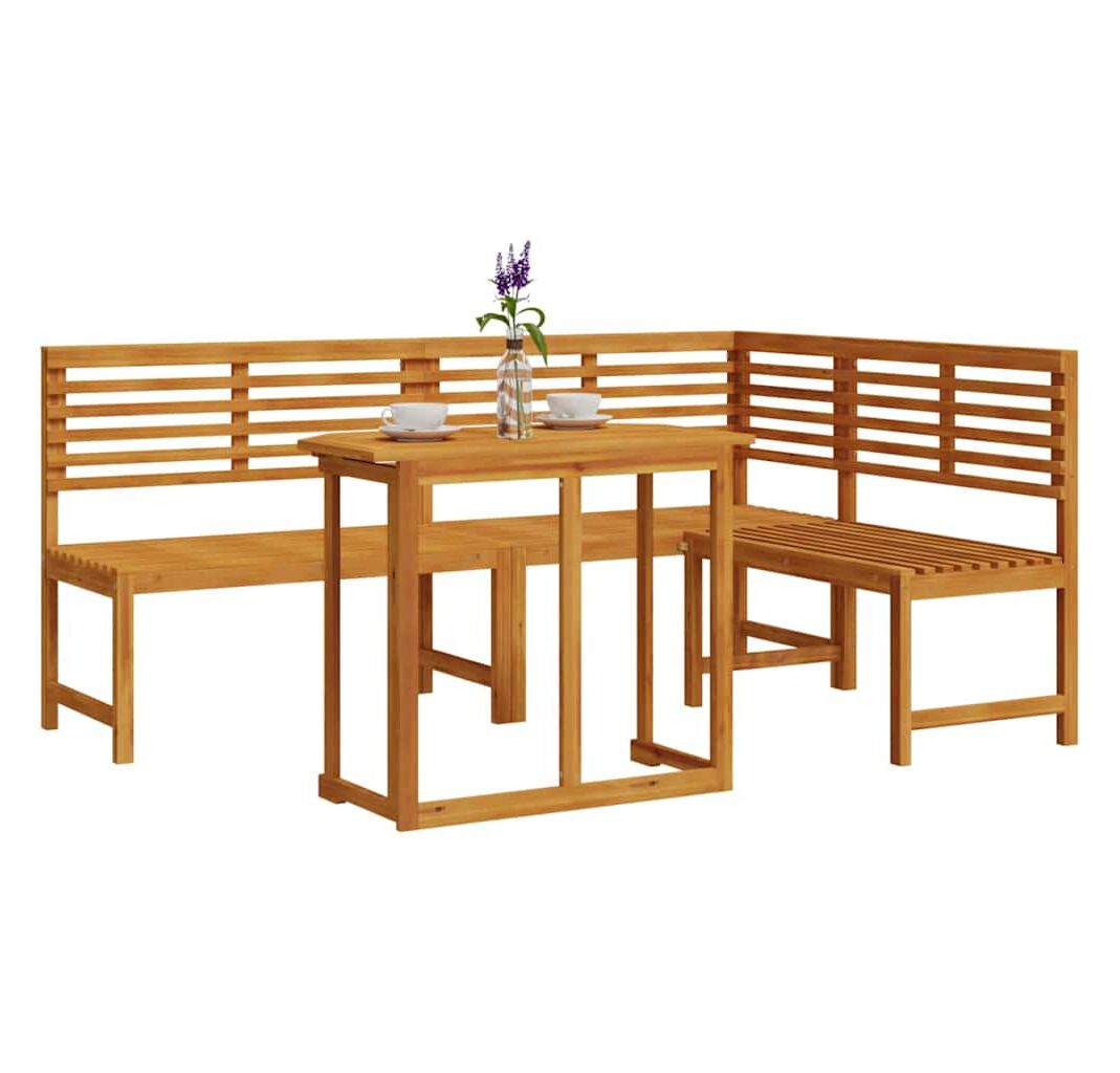 - Construcție Durabilă: Fabricată din lemn solid de acacia, știut pentru forța și durabilitatea sa, masa asta e construită să reziste în orice spațiu exterior. Te poți relaxa știind că face față soarelui și ploii, perfectă pe tot parcursul anului.