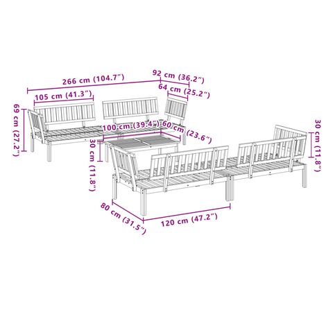 - Cadru durabil: Lemnul masiv de acacia este un material natural frumos. Lemnul de acacia este un lemn tropical de esență tare și este dens, robust și durabil. Finisajul său cu ulei face setul de mobilier potrivit pentru utilizare în aer liber.