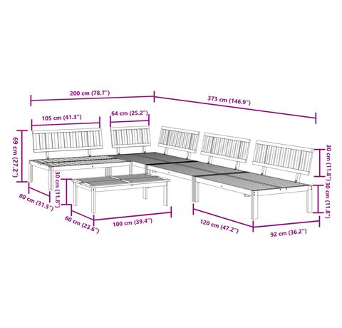 • Design modular: Canapeaua secțională este flexibilă și ușor de mutat. Puteți combina setul cu alte segmente modulare disponibile pentru a vă crea propriile configurații de seturi de grădină!