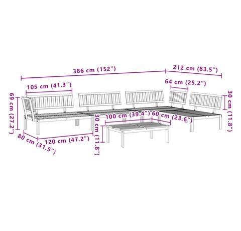 Acest set de canapea din paleți de lemn include 1 masă și 4 canapele. Este o alegere excelentă pentru utilizare în aer liber sau relaxare.