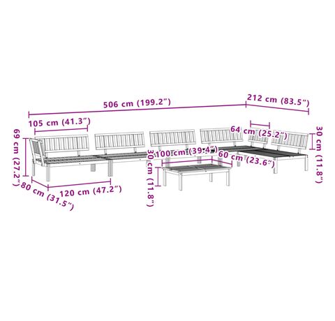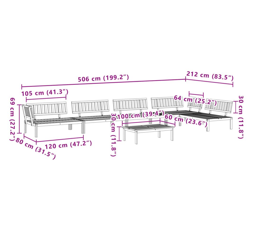 Acest set de canapea din paleți de lemn include 1 masă și 5 canapele. Este o alegere excelentă pentru utilizare în aer liber sau relaxare.