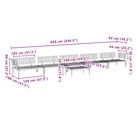 Acest set de canapea din paleți de lemn include 1 masă și 5 canapele. Este o alegere excelentă pentru utilizare în aer liber sau relaxare.