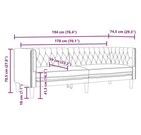 - Dimensiuni totale: 194 x 74,5 x 70,5 cm (l x ad. x î)