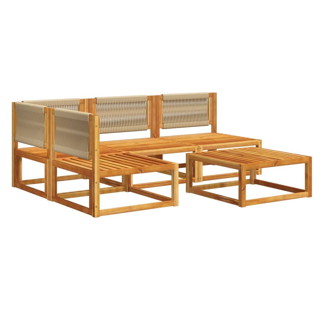 Set canapele de grădină cu 5 piese, lemn de salcâm și frânghie