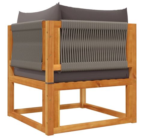 - Spătar împletit elegant: Canapeaua de grădină are spătare din frânghie lucrate cu minuțiozitate, adăugând o notă sofisticată oricărui spațiu exterior.
