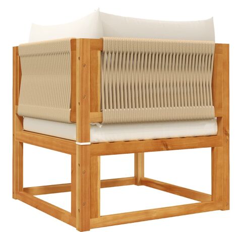 - Spătar împletit elegant: Canapeaua de grădină are spătare din frânghie lucrate cu minuțiozitate, adăugând o notă sofisticată oricărui spațiu exterior.