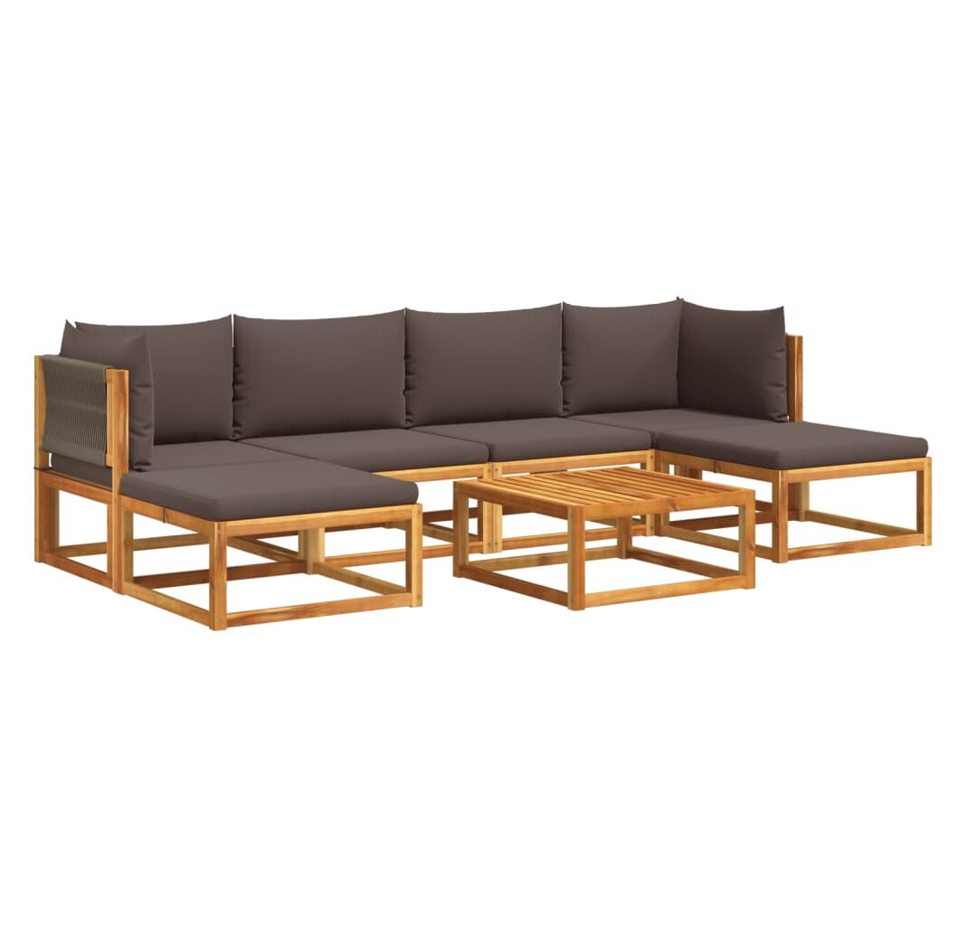- Spătar împletit elegant: Canapeaua de grădină are spătare din frânghie lucrate cu minuțiozitate, adăugând o notă sofisticată oricărui spațiu exterior.