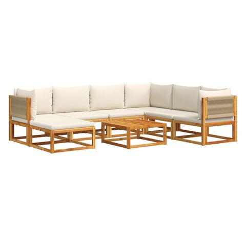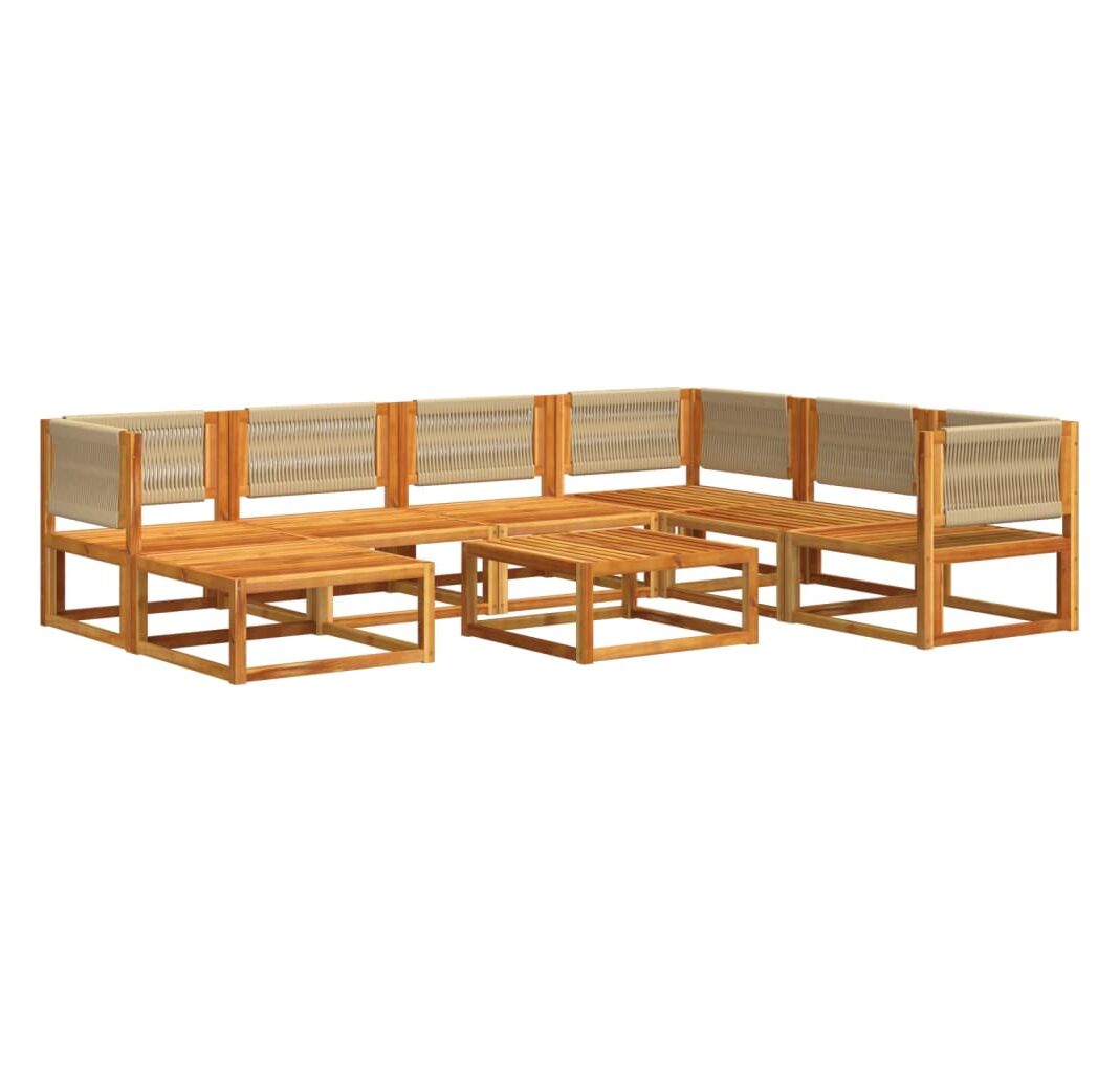 - Spătar împletit elegant: Canapeaua de grădină are spătare din frânghie lucrate cu minuțiozitate, adăugând o notă sofisticată oricărui spațiu exterior.