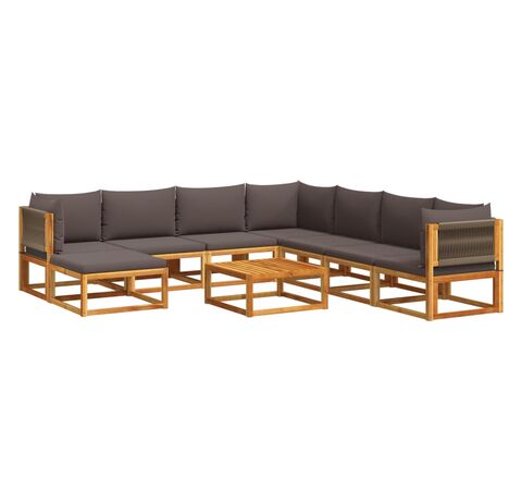 - Spătar împletit elegant: Canapeaua de grădină are spătare din frânghie lucrate cu minuțiozitate, adăugând o notă sofisticată oricărui spațiu exterior.