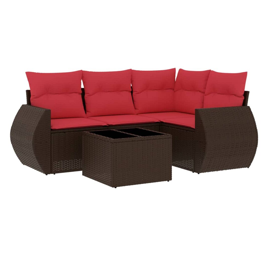 Set canapele de grădină cu perne, 5 piese, maro, poliratan
