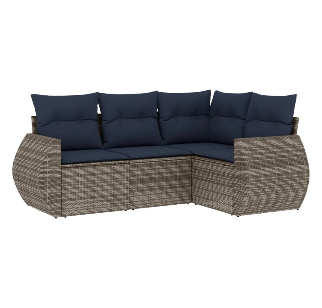 Set canapele de grădină cu perne, 4 piese, gri, poliratan