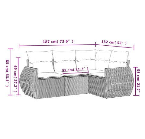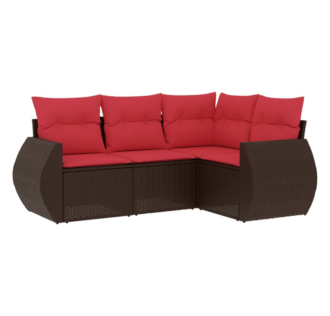 Set canapele de grădină, 4 piese, cu perne, maro poliratan maro