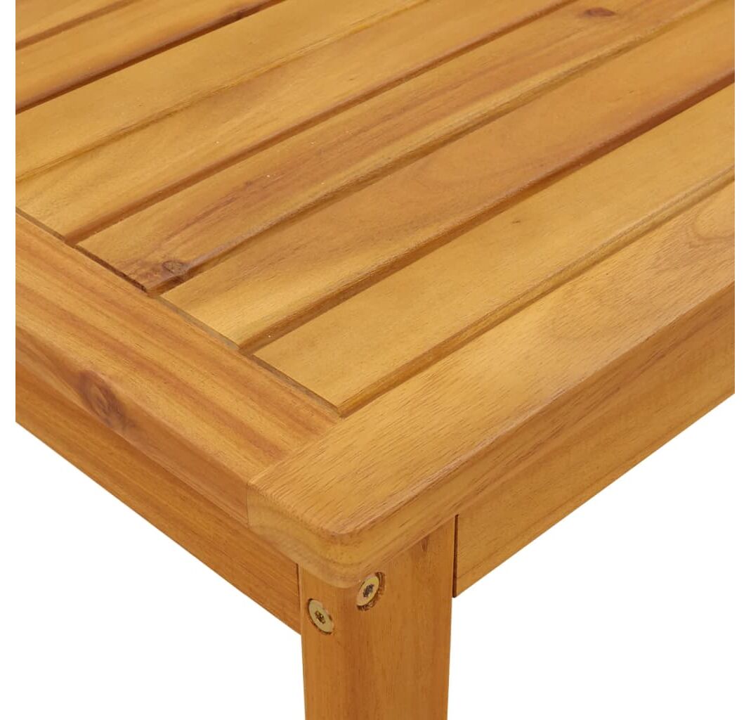- Blat stabil și ușor de curățat: Această măsuță de grădină are un blat din lemn de acacia care este robust, durabil și ușor de curățat cu o cârpă umedă.