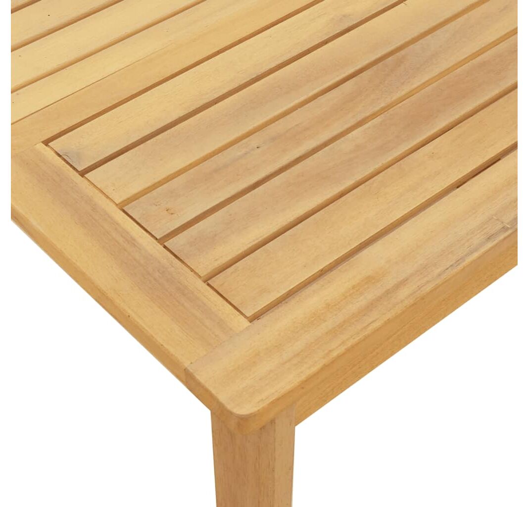 • Blat stabil și ușor de curățat: Această măsuță de grădină are un blat din lemn de acacia care este robust, durabil și ușor de curățat cu o cârpă umedă.
