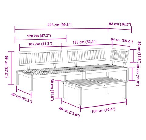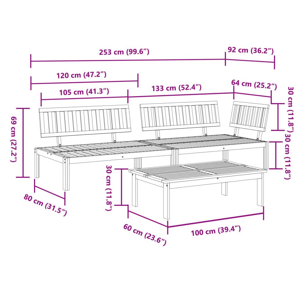 Cantitatea minima pentru "Set canapea grădină din paleți, 3 piese, lemn masiv de acacia" este 1.
