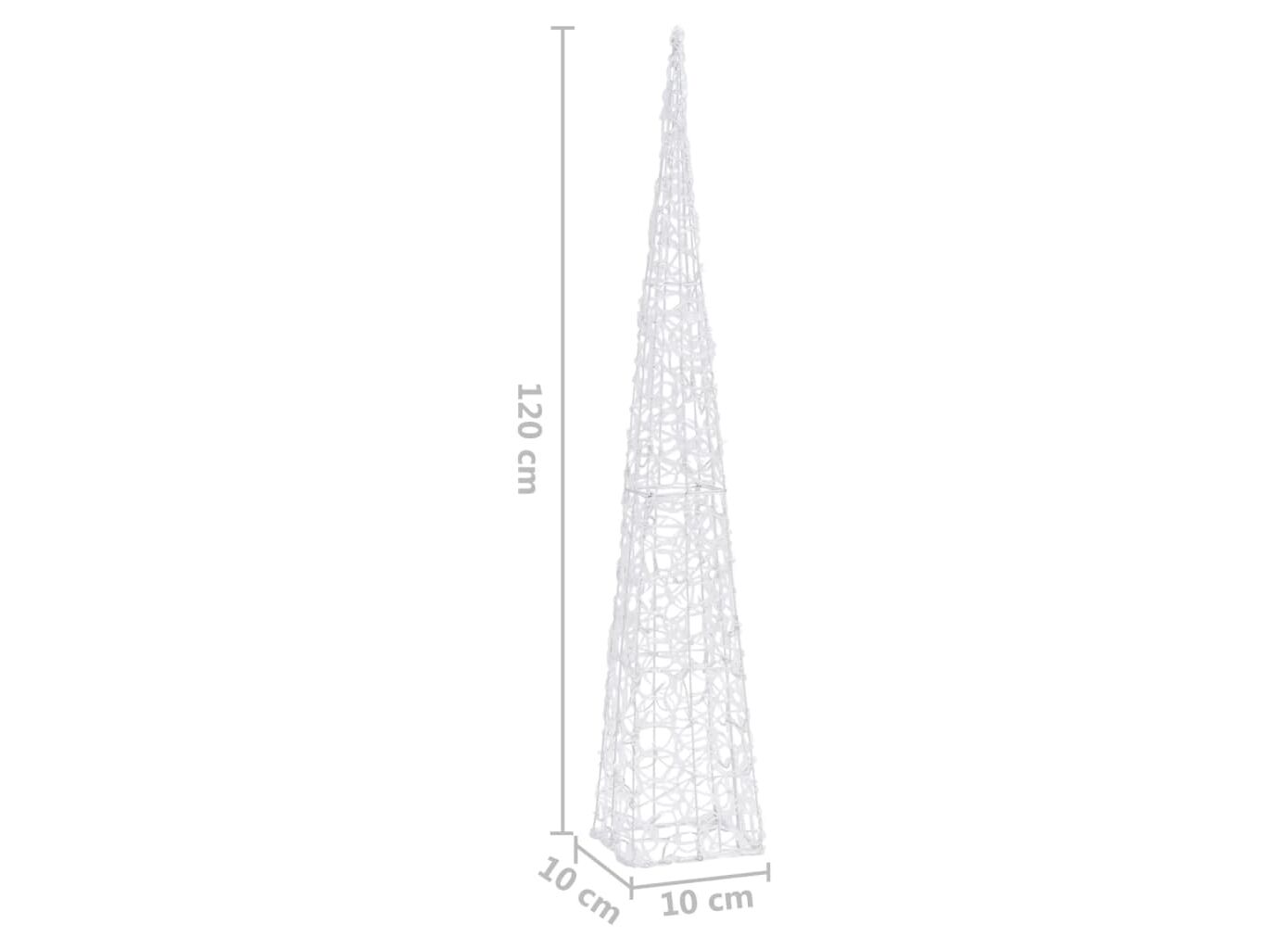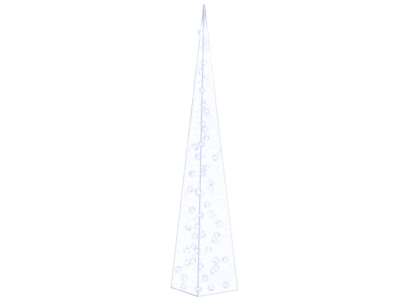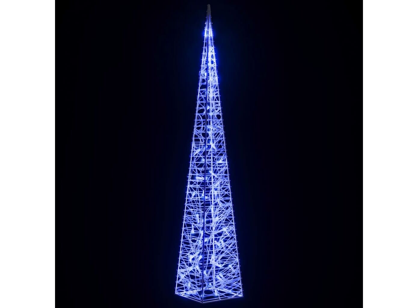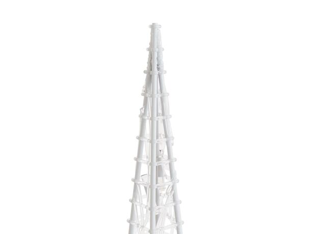 Setul conține 3 conuri de lumină de diferite înălțimi. Corpul acestui con de lumină decorativ este realizat din acril, care îi asigură un aspect luxos, de gheață, strălucitor, luminând zona din jur. Echipat cu LED-uri economice, oferă o iluminare strălucitoare și puternică. Are 8 efecte de iluminare diferite: modul combinat, modul unde, modul secvențial, modul strălucitor încet, intermitent, modul de estompare lentă, modul sclipire și iluminare continuă. Acest frumos set de conuri de Crăciun și carcasa pentru baterie inclusă sunt impermeabile, produsul fiind potrivit pentru utilizare în spațiul exterior sau interior.