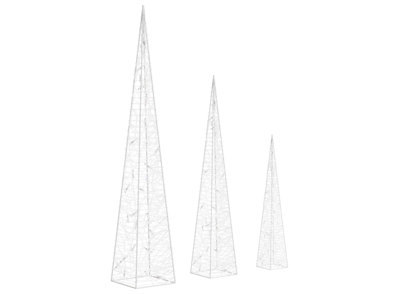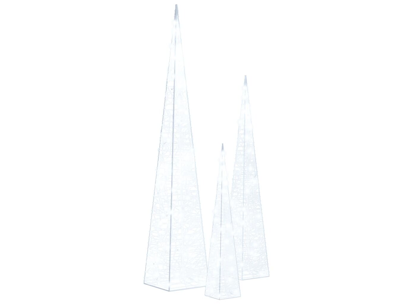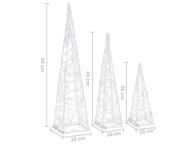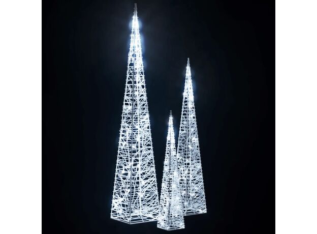 Set conuri decorative cu LED-uri, alb rece, 30/45/60 cm, acril