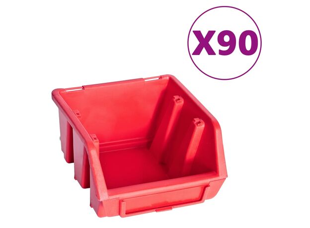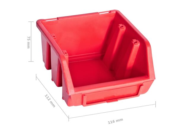 Raftul funcțional cu niște cutii stivuibile oferă multe posibilități de depozitare pentru articole mici, precum șuruburi, cuie, piulițe, mufe, fitinguri etc. Cele 6 panouri de perete solide susțin 90 de cutii, care pot fi etichetate, pentru o mai bună perspectivă asupra tuturor pieselor mici. Puteți scoate coșurile de depozitare individual și le puteți suprapune unul peste altul. Setul este extensibil și ușor de montat pe peretele unui garaj sau al unei barăci. Acest set de cutii pentru depozitare poate fi configurat pentru a se potrivi tuturor nevoilor dvs.
