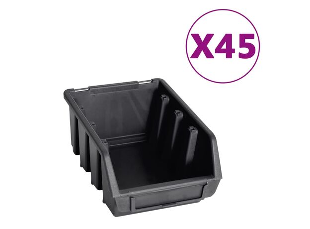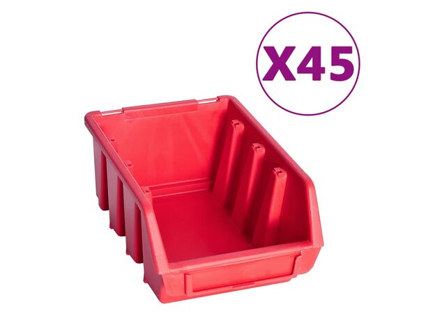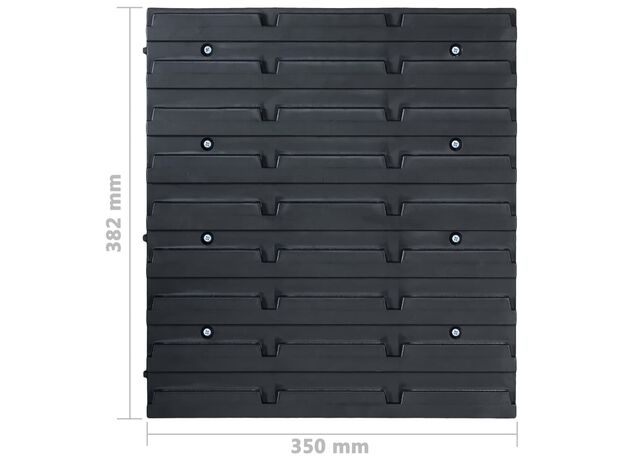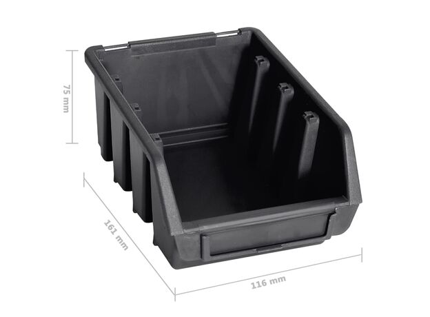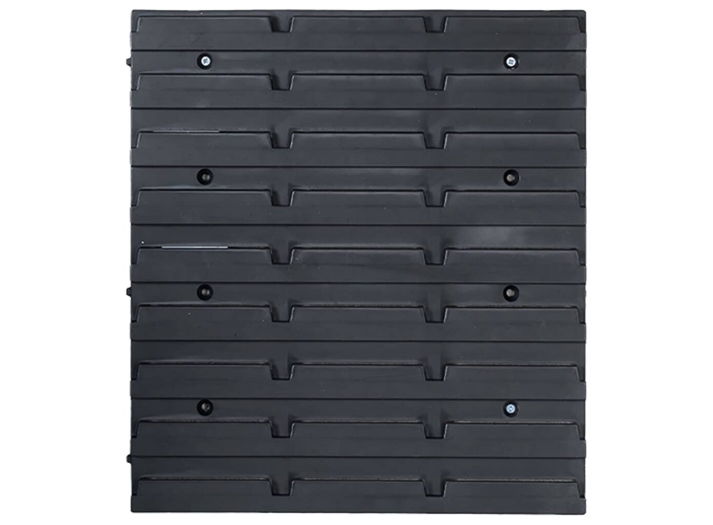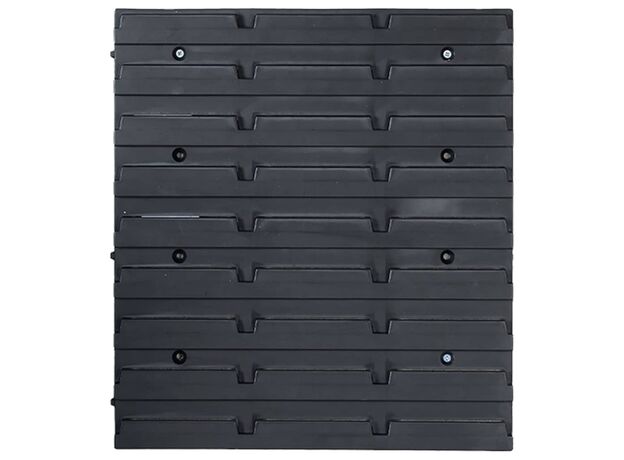 Raftul funcțional cu niște cutii stivuibile oferă multe posibilități de depozitare pentru articole mici, precum șuruburi, cuie, piulițe, mufe, fitinguri etc. Cele 6 panouri de perete solide susțin 90 de cutii, care pot fi etichetate, pentru o mai bună perspectivă asupra tuturor pieselor mici. Puteți scoate coșurile de depozitare individual și le puteți suprapune unul peste altul. Setul este extensibil și ușor de montat pe peretele unui garaj sau al unei barăci. Acest set de cutii pentru depozitare poate fi configurat pentru a se potrivi tuturor nevoilor dvs.
